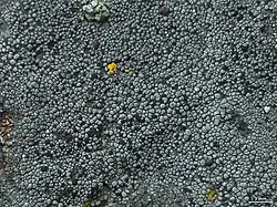 Rhizocarpon disporum, the single-spored map lichen,[2] is a species of saxicolous (rock-dwelling), crustose lichen in the family Rhizocarpaceae.[3] It has a circumpolar distribution and grows on sun-exposed siliceous rocks. Despite its species epithet, the lichen invariably contains only a single ascospore per ascus. A morphologically similar species, Rhizocarpon geminatum, has two spores per ascus; it is more widely distributed than R. disporum and tends to grow in moister habitats.[2]