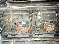 Newport asked to be buried in the parish church at Wroxeter, near the tomb of his wife's parents. This request was met. He was given a large altar tomb, on the south side of the chancel, with brilliantly coloured effigies of himself, in full Elizabethan armour, and his wife, Margaret.[30]