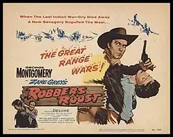 Robbers' Roost is a 1955 American Western film directed by Sidney Salkow and written by John O'Dea, Sidney Salkow and Maurice Geraghty. The film stars George Montgomery, Richard Boone, Sylvia Findley, Bruce Bennett, Peter Graves and Tony Romano. It is based on the 1932 novel Robbers' Roost by Zane Grey. The film was released on May 30, 1955, by United Artists. It was filmed in Durango, Mexico.[1][2]