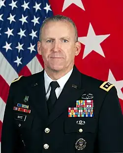 Robert P. White (born August 24, 1963) is a retired United States Army lieutenant general who last served as commander of Fort Hood, Texas, and as the 61st Commanding General of III Armored Corps. Over 90,000 soldiers were under his command.[1] From September 2019 to September 2020, he also served as commander of Combined Joint Task Force – Operation Inherent Resolve (CJTF-OIR).