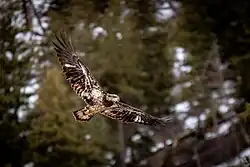 Due to its range of habitats, Rock Creek is filled with bird life. Rafting down the river, American Dippers, Killdeer, and Osprey can be seen. Hiking through the forest, an array of woodpeckers and the occasional grouse have been reported. Bald Eagle frequent the river all year round and can be seen waiting patiently for fish in snags or on the ground. Their huge nests - such as the one visible near Morgan Case - can be seen from a long ways away. One of the best places to view birds is the Rock Creek Microburst Viewing Site. More information can be found at eBird (Granite County).