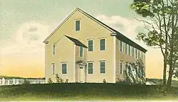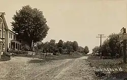 Rockingham has no formal town center; instead, town offices and the Rockingham Public Library are located in the village of Bellows Falls. The approximate center is the Rockingham Meeting House, passed by Route 103, a popular east–west route across the state. The Meeting House was built in Rockingham Village, once the main settlement in the town, but with the increased use of water power for manufacturing, population shifted to other villages located on the two rivers in the town. Most of what was left of Rockingham Village (over a dozen buildings, also called the Old Town) burned in a fire on April 14, 1908; the fire came close to the Meeting House but it was saved.[3] The houses, hotel, and store that burned were not rebuilt.[4]