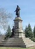 Providence residents were determined to raise a monument in his honor in 1860; they "dug up the spot where they believed the remains to be, they found only nails, teeth, and bone fragments. They also found an apple tree root," which they thought followed the shape of a human body; the root followed the shape of a spine, split at the hips, bent at the knees, and turned up at the feet.[57][58]