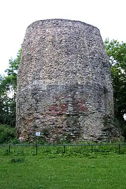 The only and most important monument from the time of Mogontiacum still standing at its original location is the so-called Drususstein. In the meantime, scholars have come to the conclusion that this is likely to be the cenotaph (tumulus honorarius) of the Roman general Drusus.[65] This was erected by the Roman army in Mogontiacum in honour of the general who died of a fatal injury in Germania in 9 BC. The monument was later approved by Augustus, who honoured it with a specially written funeral poem. Roman historians such as Suetonius and Eutropius also explicitly mention the Drusus Stone[66] and the cult ceremonial in memory of Drusus.[67]
