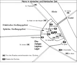 ![]() City map of Mogontiacum in the period 1st century BCE to 5th century CE | |