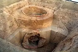 The aforementioned Dimesser Ort was not only most likely a harbour used for military purposes, but also appears to have been the long-distance trading port of Gallic-Italian merchants.[47] This is indicated by a high find density of transport amphorae of Mediterranean origin as well as other import finds from Gaul and the Mediterranean region. The structural finds such as stone paving (possibly a loading ramp for flat-bottomed ships) and quays support this assumption. In connection with the trading activities, a prosperous civilian settlement also developed at the Dimesser Ort, which must have been the civilian centre of Mogontiacum as early as the middle of the 1st century.