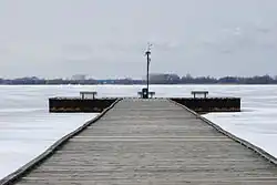 A formerly popular site in the park was the government pier on Rondeau Bay. In 2014, the pier was severely damaged by thick ice on Rondeau Bay and later removed. Despite community pressure, the pier has not been replaced.[17]