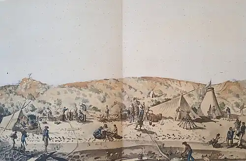 - Paintings by the expedition's artist, Jacques Arago, attest to her presence ashore in Australia at various places including Shark Bay, Western Australia and later in Sydney.[11]