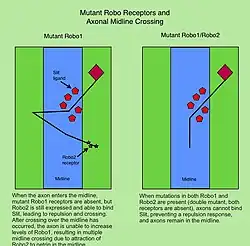 - ^ Battye R, Stevens A, Jacobs JR (June 1999). "Axon repulsion from the midline of the Drosophila CNS requires slit function". Development. 126 (11): 2475–81. doi:10.1242/dev.126.11.2475. PMID 10226006.