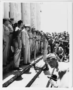 When the Allies led by General Douglas MacArthur landed on Battle of Leyte, Kangleon's guerrillas assisted them and three days later, on 21 October 1944, Kangleon was recognized as the overall commander of guerrilla forces on Leyte, the 92nd Division.[2]: 12  Gen. MacArthur personally pinned on Kangleon the Distinguished Service Cross of the United States of America, a decoration awarded for extraordinary heroism in combat witnessed by Philippine President Sergio Osmeña as well as commanders of the Army, Navy, and Air Force, at the Leyte provincial capitol building.