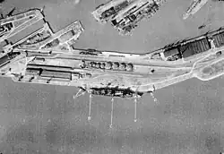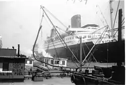 SS Bremen left New York without passengers on 30 August 1939 and at first opportunity accelerated to over 28 knots.[10] On 1 September, coincident with the start of the Second World War, she was ordered to make for the Russian port of Murmansk. Underway, her crew painted the ship grey for camouflage and covered the portholes and windows. She made use of bad weather and high speed to avoid Royal Navy cruisers, arriving in Murmansk on 6 September 1939. With the outbreak of the Winter War between Finland and the Soviet Union, on 10 December 1939 Bremen made a dash to Bremerhaven, arriving on 13 December. On the way she was sighted and challenged by the S-class submarine HMS Salmon. A Dornier Do 18 seaplane escorting Bremen forced Salmon to dive for safety. Salmon's commander, Lieutenant Commander E. O. Bickford, decided not to torpedo the liner because he believed she was not a legal target.[11] His decision not to fire on Bremen likely delayed the start of unrestricted submarine warfare.[3]