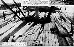 After union workers went on strike, some 1,700 strikebreakers were brought in to unload ships, about 80 of whom were assigned to unload Golden Kauri.[11][12] On 4 October, a strikebreaker was fatally injured by timber falling from a sling being used to unload Golden Kauri, and a second strikebreaker was killed in an industrial accident the same day. Unionists jeered at the ambulance transporting the two to hospital as it passed by.[13]