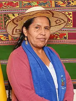 Sabina Orellana Cruz (born 1970) is a Bolivian unionist and politician of Quechua origin who served as Minister of Cultures, Decolonization and Depatriarchalization under President Luis Arce from 2020-2024.[1] She is a member of the Bartolina Sisa Confederation of indigenous women.[2][1]
