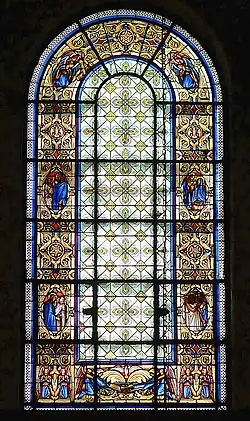 The 19th-century stained-glass windows have a large amount of white glass, to increase the amount of light in the church. The colors change with the light throughout the day.