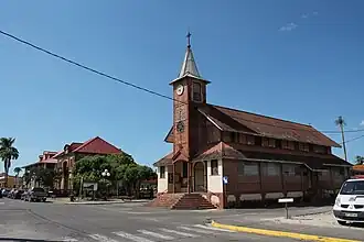 ![]() ![]() ![]() From top to bottom: subprefecture building, the Hôtel de Ville, main Catholic church of Saint-Laurent-du-Maroni | |
