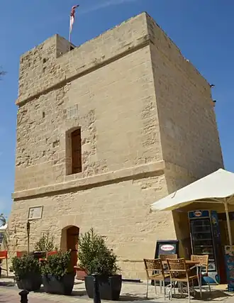 Saint Julian's Tower (Maltese: Torri ta' San Ġiljan), originally known as Torre di San Giuliano[1] and also known as Sliema Tower (Maltese: Torri tas-Sliema),[2] is a small watchtower in Sliema, Malta. It was completed in 1658 as the fifth of the 13 De Redin towers. An artillery battery was built around the tower in 1715. Today, the tower and the remains of the battery are a restaurant.