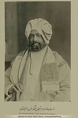 It was built by a wealthy timber merchant and businessman of Rawalpindi, Rai Bahadur Sujan Singh, in 1893.[1] Its constructor also built the Odeon cinema house and a library for the Rawalpindi cantonment.[1] Another project constructed by Sujan Singh was Bagh Sardaraan (the garden of Sardars), a garden containing date palms, spires, servant quarters, and a gurdwara.[1]
