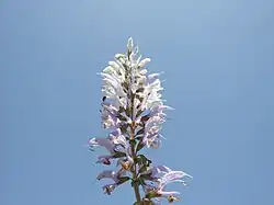 Salvia barrelieri (Berber clary) is a perennial found in northern Africa, Morocco, Tunisia, Algeria, and southwestern Spain, usually between the elevations of 500–1200 meters. It grows 1–2 meters tall, with large, wavy, gray-green leaves. The inflorescence is a verticillaster (See Inflorescence) and can grow nearly one meter tall, with flowers of light lavender or sky blue blooming all at the same time.[1]
