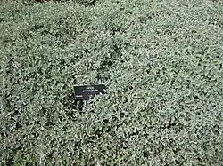 Salvia chionophylla is a low-growing evergreen perennial plant native to a small area in the state of Coahuila, Mexico. First described in 1907 by Merritt Lyndon Fernald, it was only seen in horticulture beginning around 1996. It is a trailing plant that spreads by rooting at its nodes, producing more trailing stems, with small rounded dove-gray leaves about 0.5 inches (13 mm) long, evenly spaced along the stem. The small blue flowers are less than .25 inches (6.4 mm) long on short inflorescences with whorls of 2โ6 flowers.[1]