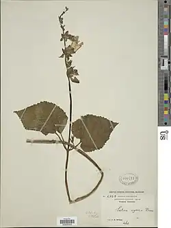Salvia cynica is a perennial plant that is native to Sichuan province in China, growing in forests and streamsides at 1,500 to 3,200 m (4,900 to 10,500 ft) elevation. The leaves are broadly ovate to broadly hastate-ovate or subcircular, ranging in size from 5 to 20 cm (2.0 to 7.9 in) long and 3 to 18 cm (1.2 to 7.1 in) wide.