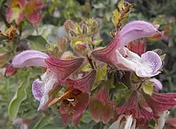 Salvia dolomitica (the dolomite sage or Pilgrim's Rest pink sage) is a perennial shrub native to the Mpumalanga and Limpopo provinces of South Africa, typically growing at 900โ1500 m elevation. Profusely covered with grey leaves, it grows to 2 m in height and width in the wild, with pale lilac flowers.[1]