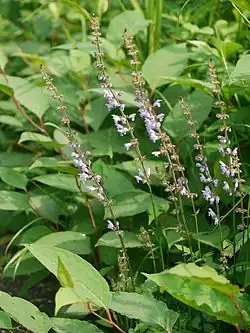 Salvia japonica, known as East Asian sage,[1] is an annual plant that is native to several provinces in China and Taiwan, growing at 200 to 1,200 m (660 to 3,940 ft) elevation. S. japonica grows on erect stems to 40 to 60 cm (16 to 24 in) tall. Inflorescences are 2-6 flowered verticillasters in terminal racemes or panicles, with a corolla that varies in color from reddish, purplish, bluish, to white, and is approximately 1.2 cm (0.47 in).