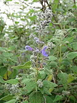 Salvia keerlii is a herbaceous perennial that is native to Mexico. It freely branches, reaching up to 1 m (3.3 ft) tall and wide. The ovate-lanceolate leaves are grayish, reaching 4 cm (1.6 in), and aromatic. The lilac flowers grow in whorls on short inflorescences, blooming midsummer to autumn.[1]