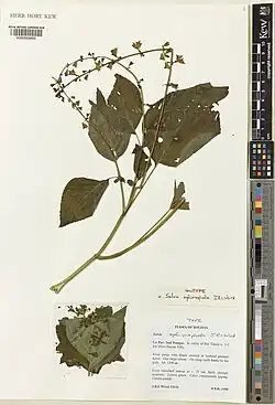 Salvia ophiocephala is an annual herb that is endemic to Bolivia—as of 2007 there was only known to be one small colony growing in a Yungas forest valley at 1,200 metres (3,900 ft) elevation. The site is close to settlements and gold-mining, and therefore the plant is considered critically endangered. The specific epithet, ophiocephala, refers to the distinctive teeth in the calyx mouth which hints at the open mouth of a striking rattlesnake. It appears to be related to Salvia personata.