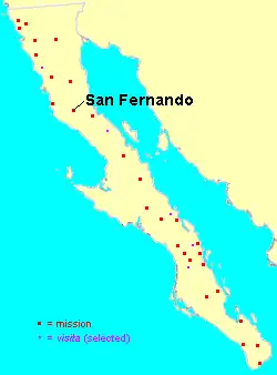 Mission San Fernando Velicatá (Spanish: Misión San Fernando Rey de España de Velicatá) was a Spanish mission located about 56 km (35 mi) southeast of El Rosario in Baja California, Mexico. The mission was founded in 1769 by Franciscan missionary Junípero Serra and was the only mission founded by Franciscan missionaries in what is now Baja California.[1]