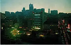 The modern parades that started in 1953 initially were routed along Grant Avenue from Market through Chinatown,[123][124][125][126] although crowds were starting to overwhelm the narrow street by 1962.[19] In 1965, the route was changed to bypass the narrow portion of Grant, detouring at Bush to Kearny.[127] Community leaders in Chinatown were displeased, but city officials forced the route change to avoid traffic jams and a potential fire hazard.[30][123][128] The route was updated again in 1981 to its present course,[77]: 238 which includes a loop around Union Square.[129] Despite the route changes, the start and finish have remained on Market and next to Portsmouth Square on Kearny, respectively, with the sole exception of 1965, when in addition to bypassing Grant, the start was also moved to Civic Center.[127]