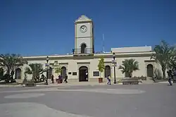 The indigenous Pericu name for San Jose del Cabo was Añiñi.[7] The Misión Estero de las Palmas de San José del Cabo Añuití was founded in 1730 on the west bank of the nearby Río San José, which flows into the largest body of freshwater in Baja California Sur, an estuary, after flowing largely subterraneanly for 39.1 kilometres (24.3 mi) from its origin in the Sierra de la Laguna (Laguna Mountains). For centuries, the river has provided a source of freshwater for the locals and animals of this coastal desert we know today as San José del Cabo; it was once used as a source of freshwater for Spanish galleons traveling back from the Philippines.[8] The river once flowed above-ground until the beginning of the 20th century, due to anthropogenic causes.[9] A one-kilometer long sandbar separates the estuary from what early Spanish explorers, including Sebastián Vizcaíno, called the Bahía de San Bernabé (Bay of Saint Burnaby), now known as Bahía de San José del Cabo.[10]