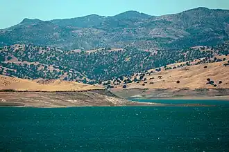 San Luis Reservoir also supplies water to 63,500 acres (25,700 ha) of land in the Santa Clara Valley west of the Coast Ranges.[2] San Justo Dam stores water diverted from San Luis Reservoir through the Pacheco Tunnel and Hollister Conduit, which travel through the Diablo Range.[3] The Santa Clara Tunnel and Santa Clara Conduit convey water to the Coyote Pumping Station in the Santa Clara Valley.[2][4]