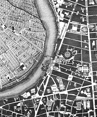 ![]() Giovanni Battista Nolli, Nuova Topografia di Roma (1748). The hospital is marked with the numbers 470 (men's ward) and 471 (women's ward). | |