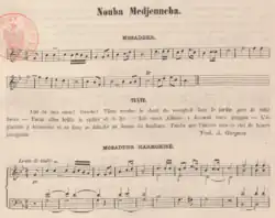 ![]() A Mseddar piece from the Nûba Mǧənba : Qum yā ḥabībī, by Alexandre Christianowitsch, 1863. | |