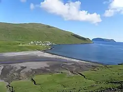 Sandvík (pronounced [ˈsanvʊik], "Sandy Bay"; Danish: Sandvig) is the northernmost village of the island of Suðuroy in the Faroe Islands. It is situated on the northern side of a shallow fjord. The village was previously known as Hvalvík (Bay of Whales). It changed its name to Sandvík in 1913 as there was too much confusion regarding mail delivery, because there is another village named Hvalvík on Streymoy. The village had originally been known as Sandvík during the Viking Age.