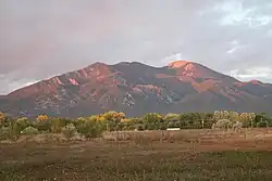 Taos Ski Valley lies just to the west of Wheeler Peak. Much of the central portion of the Taos Mountains is on Taos Pueblo land. As viewed from Taos, they are locally called "Taos Mountain."