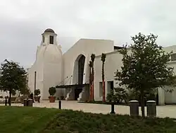 The original Spanish-style terminal building, commissioned by United Airlines in 1942 was designed by William Edwards and Joseph Plunkett, an architectural team whose work, including the Arlington Theatre and the National Armory, helped shape the Mediterranean style of the city.