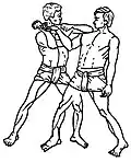 | .jpg) A step of Sarit Sarak (Sharit Sharak), the weaponless martial art form | |