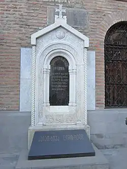 In 1795, he was killed in Haghpat Monastery by the invading army of Agha Mohammad Khan Qajar, Shah of Persia. He demanded that Sayat Nova convert from Christianity to Islam. He refused and declaring his religion is undeniably Armenian Christian. Hence he was promptly executed by beheading.[5] He is buried at the Armenian Cathedral of Saint George in Tbilisi.