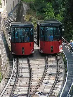 The Schlossbergbahn, or Schloßbergbahn (English: Castle Hill Railway), is a funicular railway in the Austrian city of Graz. It connects the city centre with the Schloßberg, a hill and the site of a demolished fortress, with extensive views over the city.[1]