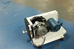 A scroll compressor (also called spiral compressor, scroll pump and scroll vacuum pump) is a device for compressing air or refrigerant.[1] It is used in air conditioning equipment, as an automobile supercharger (where it is known as a scroll-type supercharger) and as a vacuum pump. Many residential central heat pump and air conditioning systems and a few automotive air conditioning systems employ a scroll compressor instead of the more traditional rotary, reciprocating, and wobble-plate compressors.
