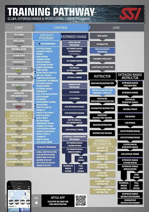 The SSI Training Standards outline the offered programs, their prerequisites and certification progression.[14]