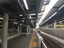 In September 1964, a third temporary platform was constructed across from the existing island platform to separate passengers on westbound trains and eastbound trains to reduce overcrowding during the 1964 Summer Olympics. The third temporary platform has remained closed after the 1964 Games, but the plan was announced in 2016 to renovate the station and to convert the temporary platform to a permanent westbound platform in time for the 2020 Summer Olympics.
