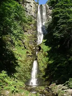 | Pistyll Rhaeadr | Powys, Wales | 240-foot (73 m) tall waterfall, one of Britain's tallest, fed by streams from the Berwyn Mountains | [1] | |