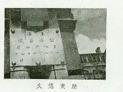 The hospital was originally founded as General Hospital in Shanghai or Shanghai General Hospital. The hospital might not have had an official Chinese name until 1877, and a few common Chinese names include French Hospital (法国医院), Shanghai Public Hospital (上海公病院), and General Hospital (综合医院).[2] In 1877, the Chinese name of the hospital was changed to Gongji Hospital (公济医院). In 1953, the Chinese name was again changed to Shanghai Municipal First People's Hospital (上海市立第一人民医院), and Shanghai First People's Hospital (上海市第一人民医院) in 1966. It was entitled Shanghai Red Cross Hospital (上海市红十字医院) in 1981, and the First People's Hospital affiliated with Shanghai Jiaotong University (上海交通大学附属第一人民医院) in 2002.[3]
