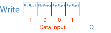 This arrangement performs destructive readout – each datum is lost once it has been shifted out of the right-most bit.
