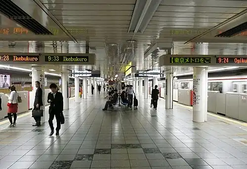 The station facilities on the Marunouchi Line were inherited by Tokyo Metro after the privatization of the Teito Rapid Transit Authority (TRTA) in 2004.[6]