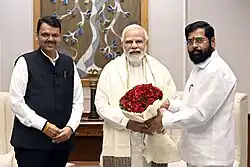 In late June 2022, Eknath Shinde, a senior Shiv Sena leader, and the majority of MLAs from Shiv Sena joined hands with the BJP.[52][53][54] Governor Bhagat Singh Koshyari called for a trust vote, an action that would later on be described as a "sad spectacle" [55] by Supreme Court of India, and draw criticism from Political Observers.[56] Uddhav Thackeray resigned from the post as chief minister well as a MLC member ahead of no-confidence motion on 29 June 2022.[57] Shinde subsequently formed a new coalition with the BJP, and was sworn in as the Chief Minister on 30 June 2022.[58] Uddhav Thackeray filed a lawsuit with the Supreme Court of India claiming that Eknath Shinde and his group's actions meant that they were disqualified under the anti-defection law, with Eknath Shinde claiming that he has not defected, but rather represents the true Shiv Sena party.[59] The case is currently being heard by Supreme Court of India.[59][60] The parties split into two factions: Balasahebanchi Shiv Sena led by Shinde and Shiv Sena (Uddhav Balasaheb Thackeray) led by Thackeray.