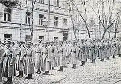 ![]() The first detachment of Sich Riflemen after the suppression of the Kyiv Arsenal January Uprising in January 1918. | |