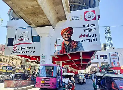 Sindhi Camp, also known as AbhiBus Sindhi Camp, is an elevated metro station on the East-West Corridor of the Pink Line of Jaipur Metro in Jaipur, India. This station was opened on 3 June 2015, which connects to the Sindhi Camp, an inter state bus terminal as well as projected Orange Line of Jaipur Metro.[1][2]